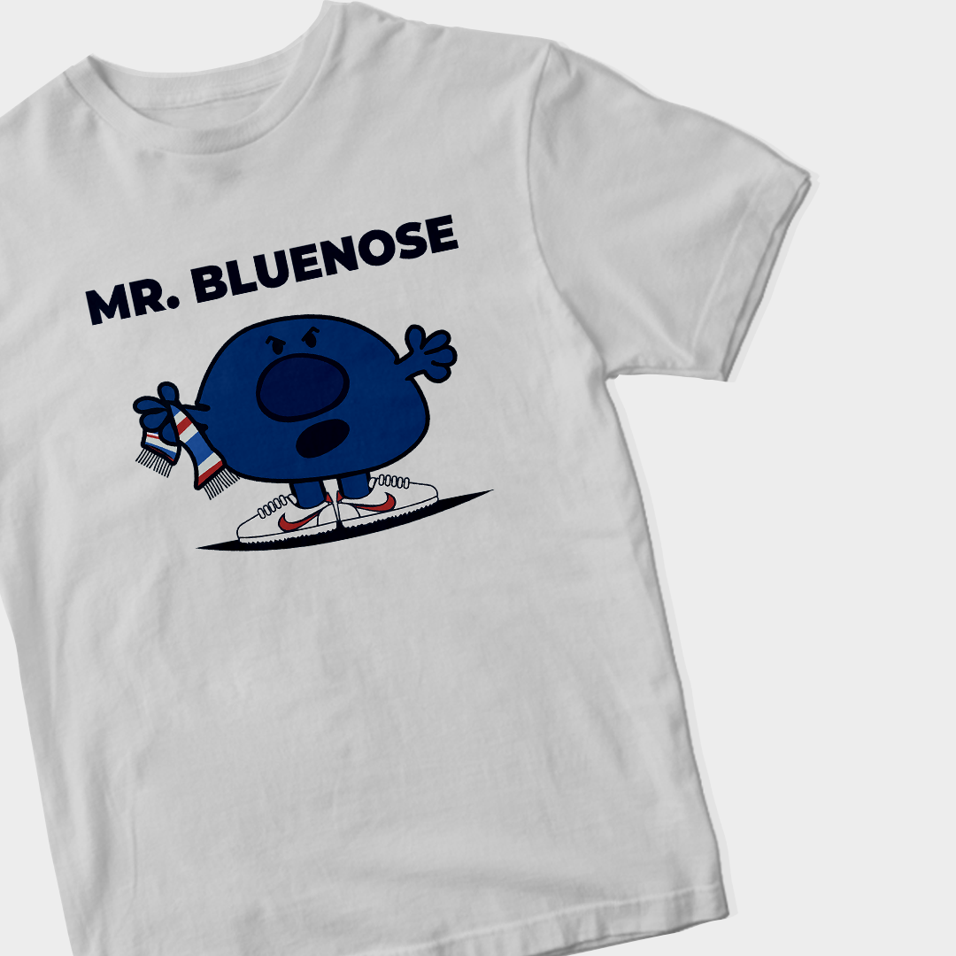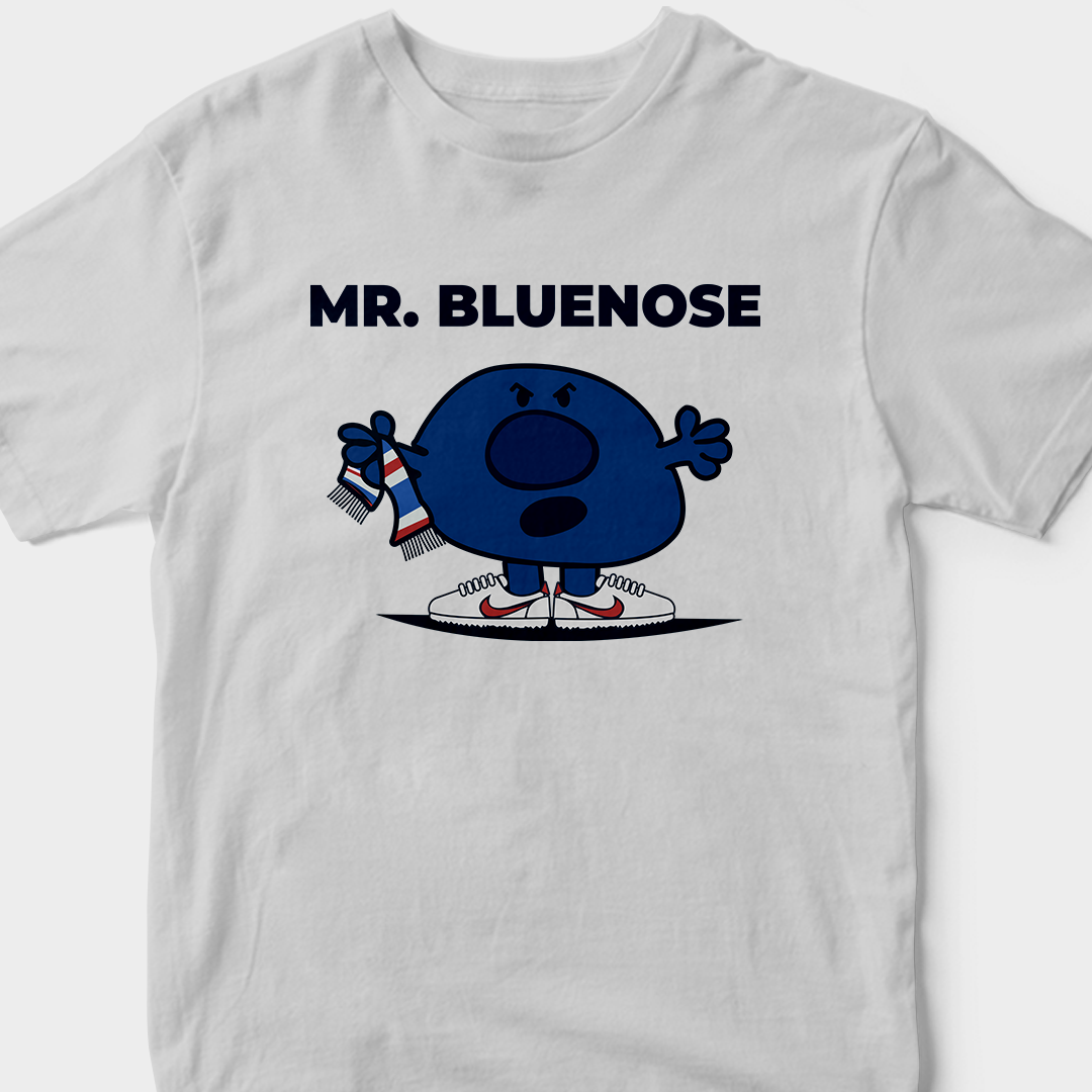 The Mr Bluenose T-Shirt is perfect to wear on match day, on the terraces at Ibrox, down at the local with a pint of lager or cozy in the comforts of your own home.
